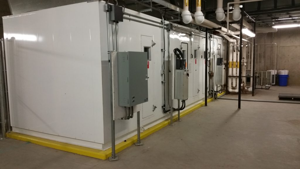 - Service corridors with unit heaters to provide shelter for maintenance staff, and a heated enclosure for piping connections and natural gas humidifiers
