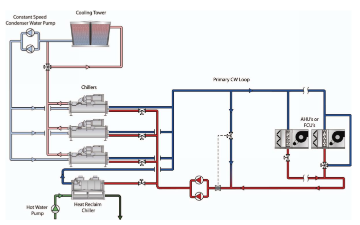 A chiller designed for heat reclaim will generate high-pressure refrigerant within the condenser that can be used to produce higher temperature condenser water.